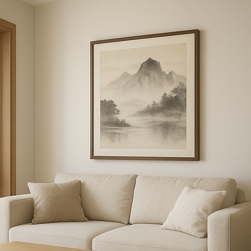 산은 든든한 버팀목과 같은 기운을 상징합니다. 거실 뒤쪽 벽에 배산임수(背山臨水) 개념으로 산 그림을 걸면 가족에게 안정감과 보호의 에너지를 줍니다. 너무 날카로운 봉우리보다는 완만하고 부드러운 산세가 좋습니다.