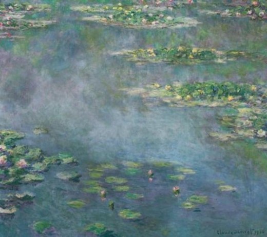• 「수련」 연작에서는 수면 위로 비치는 하늘과 나뭇잎의 반사광과 그림자를 포착합니다.