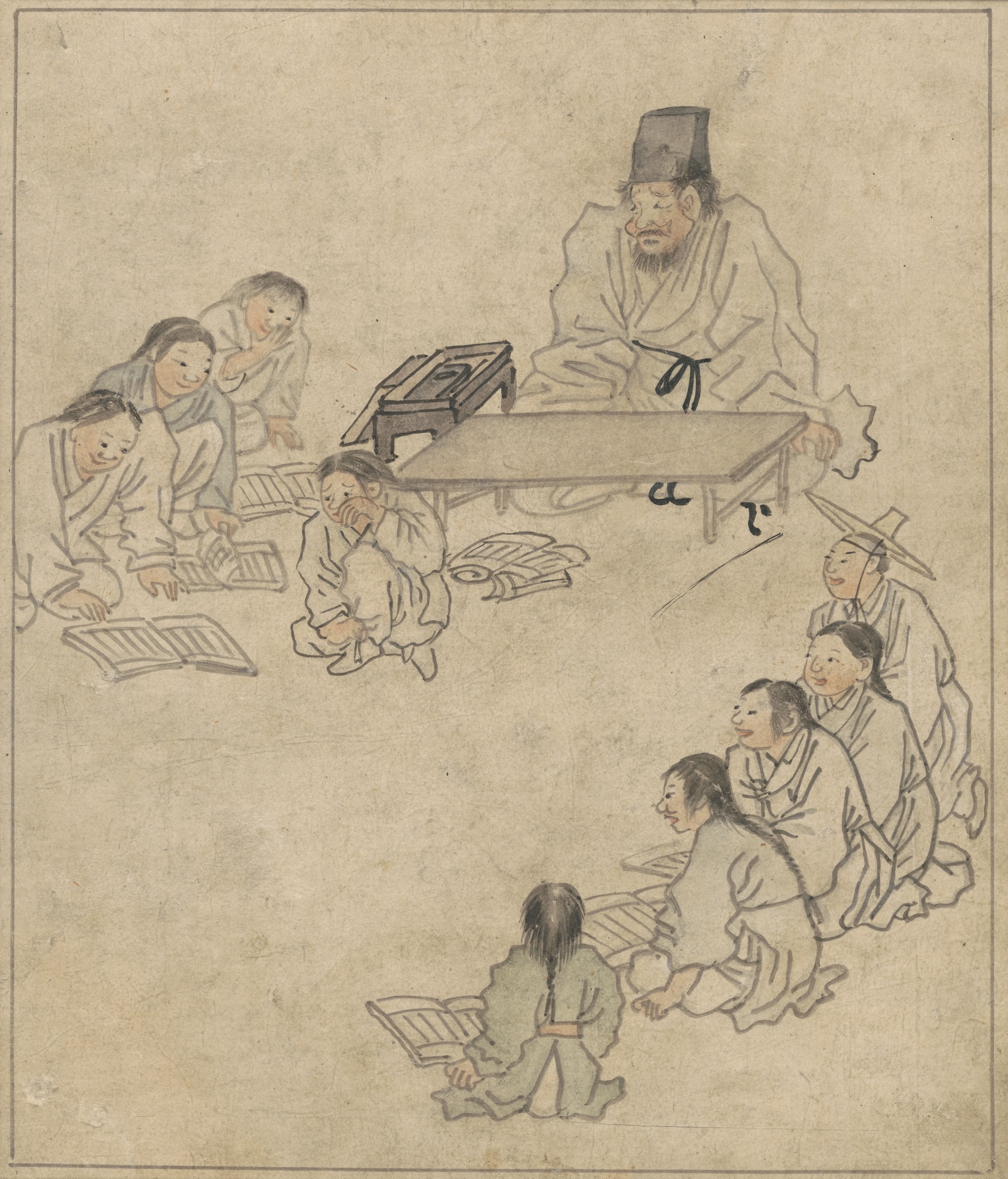 • 김홍도의 「서당」에서는 스승 앞에서 졸거나 딴짓하는 아이들의 모습이 등장해 엄숙한 교육의 현실과 유머 사이의 간극을 드러낸다.